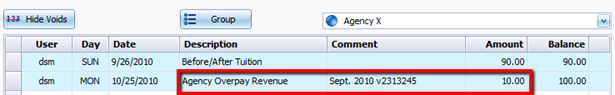 - Use Agency Payment Posting to transfer the overpayment as a credit (negative charge) to the family. Using an Adjust Code as a transfer not only balances the agency ledger but also reduces the amount due on the family ledger, passing on the credit for the overpayment to the family.