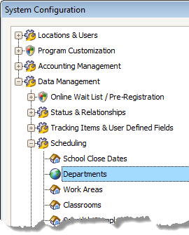 - Go to Data Management > Scheduling > dbl-click Departments.