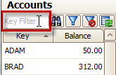 Hint: On the list of accounts click the “Key” header to sort alphabetically. Click the “Balance” header to sort by amount due. Click the header a second time to sort in reverse order.